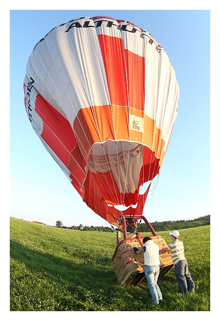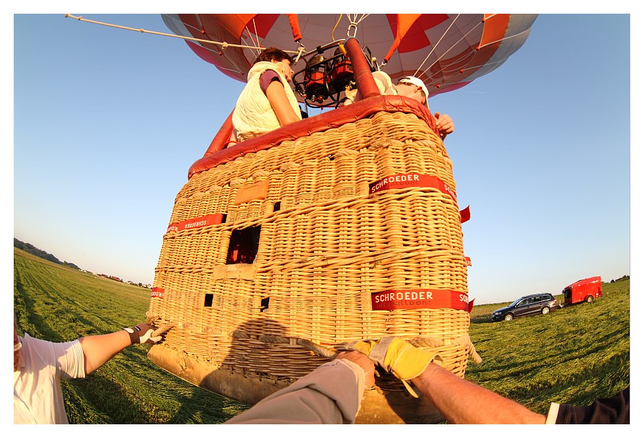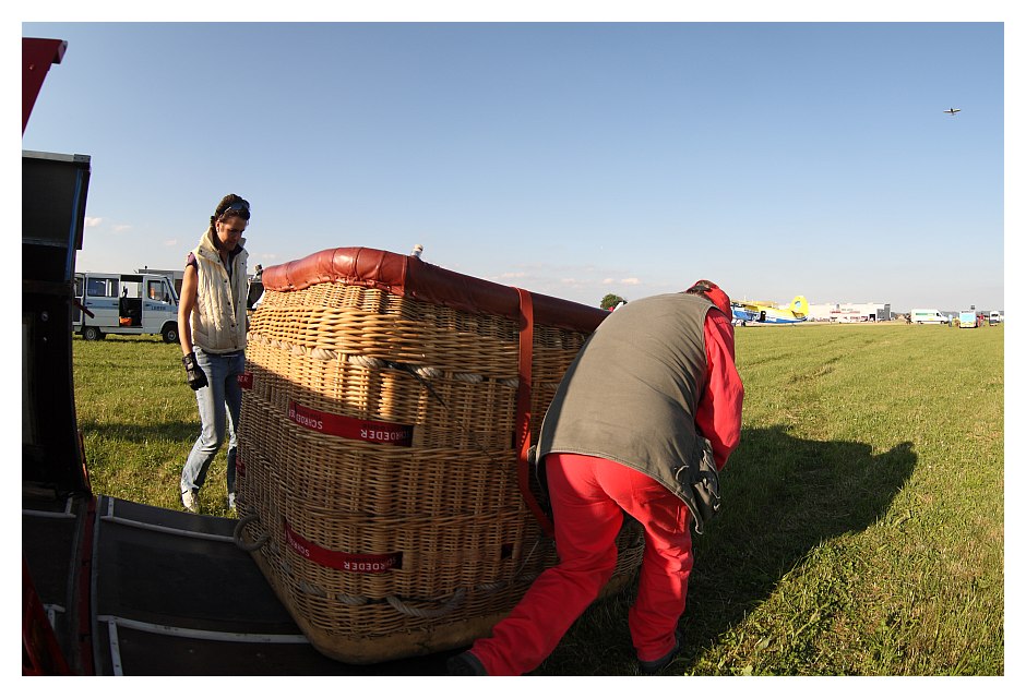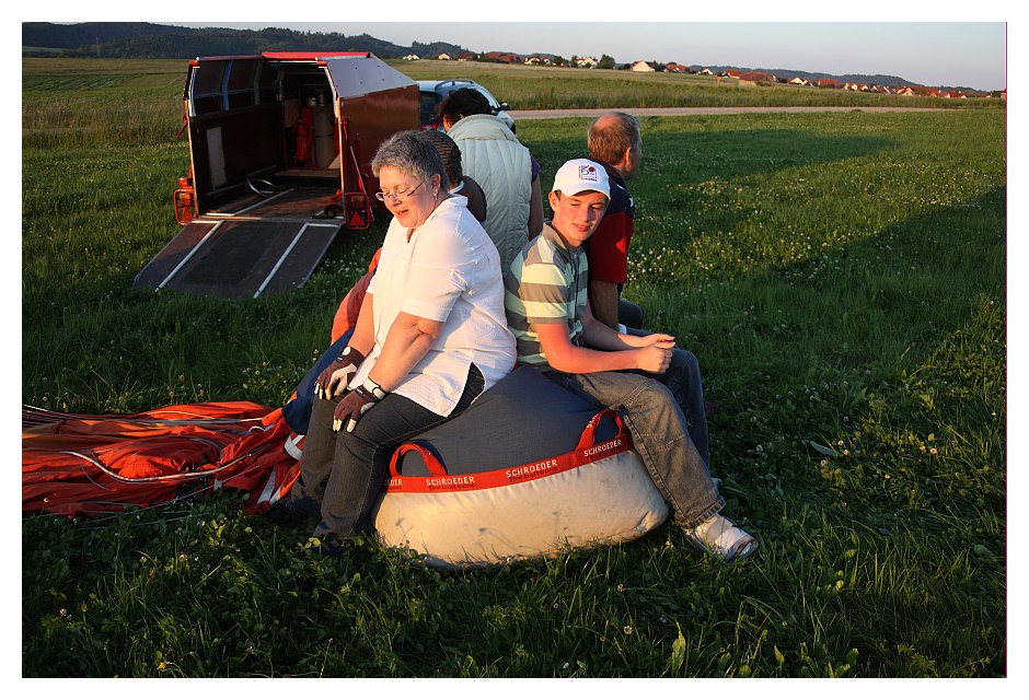 Da wir in einer frisch gemähten Wiese gelandet sind tragen wir unseren Ballon