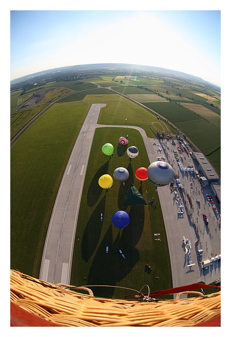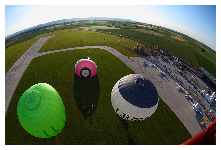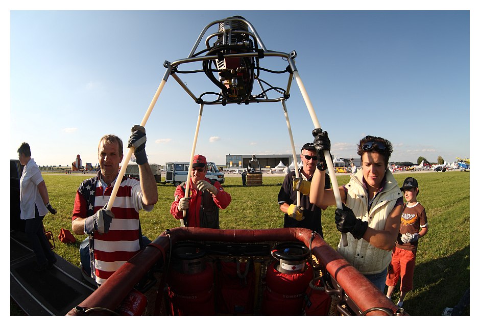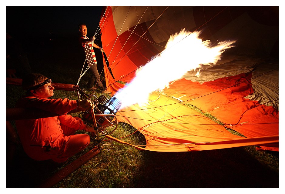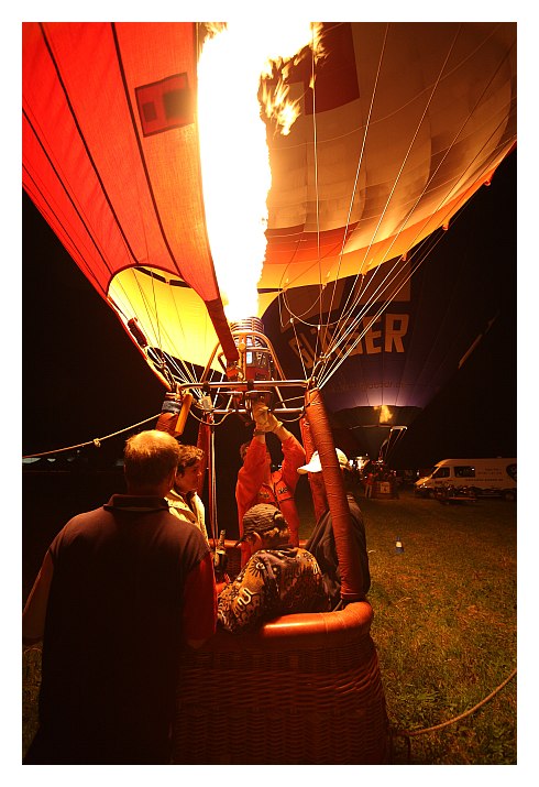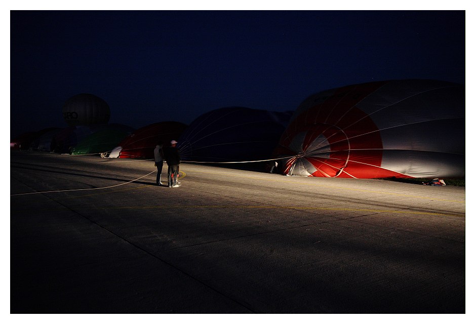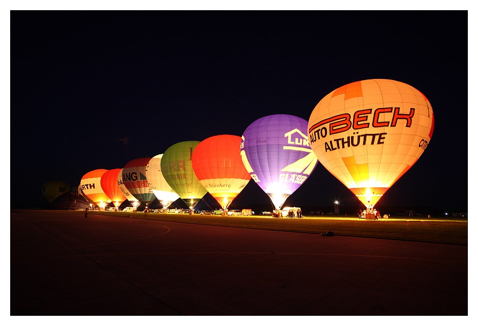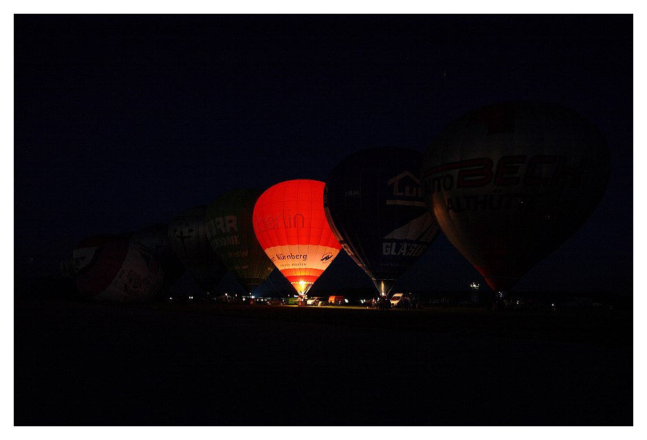 .. ein gutes Dutzend Ballone parallel Gas geben und das Flugfeld erhellen.