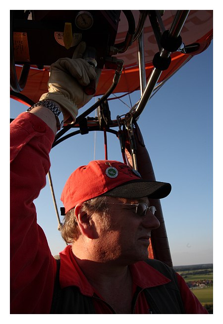Während hinter uns immer mehr Ballone emporquellen schaut unser Pilot nach